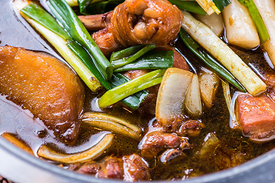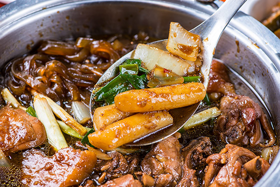 獨特韓式醬汁,燒製入味,燉煮後的雞肉,皮Q肉嫩,鮮甜多汁,鮮綠蔥段更將整鍋菜的香氣再再提升。