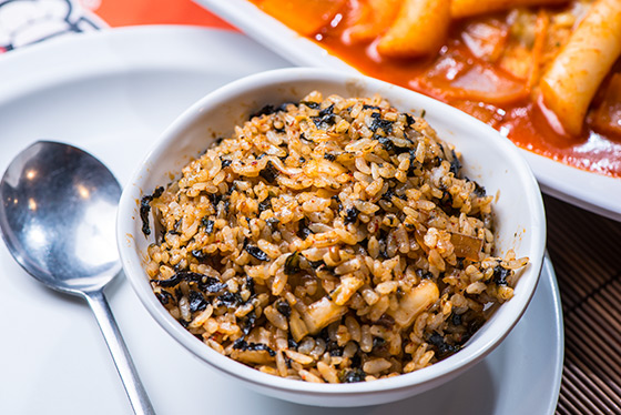 最後在鍋底加入白飯、海苔絲拌炒,接著淋上麻油拌炒,將所有醬汁的香氣,不斷地拌入,口口濃郁鮮味十足。