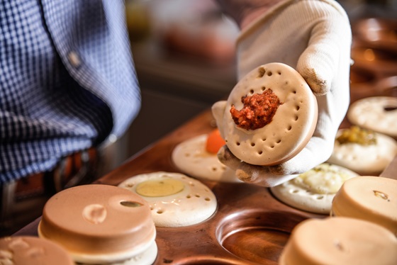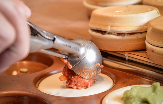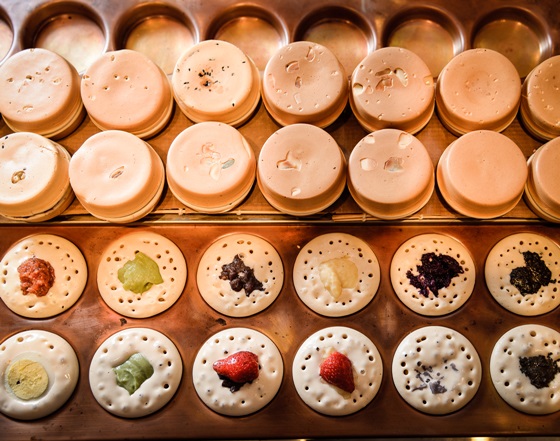 猶如蛋糕般香軟,老闆熟練地將餅皮漿倒入特製純銅模具中,彷彿一個個待孵出的希望。