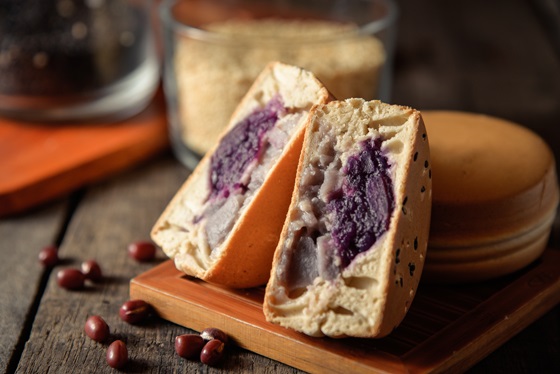 掰開餅皮,深紫和淺紫交融的內餡令人驚艷,超高人氣的芋頭,搭配富含花青素的紫心地瓜,入口香甜綿密,讓傳統經典呈現出創意新風味!