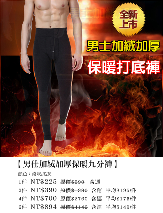 商品訊息簡述: 平均每件最低只要149元起(含運)即可購得男仕加絨加厚保暖九分褲1件/2件/4件/6件,顏色:淺灰/黑灰。