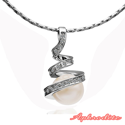商品名稱 : 【Aphrodite愛芙晶鑽】螺旋美鑽造型18K珍珠項鍊(白金色)