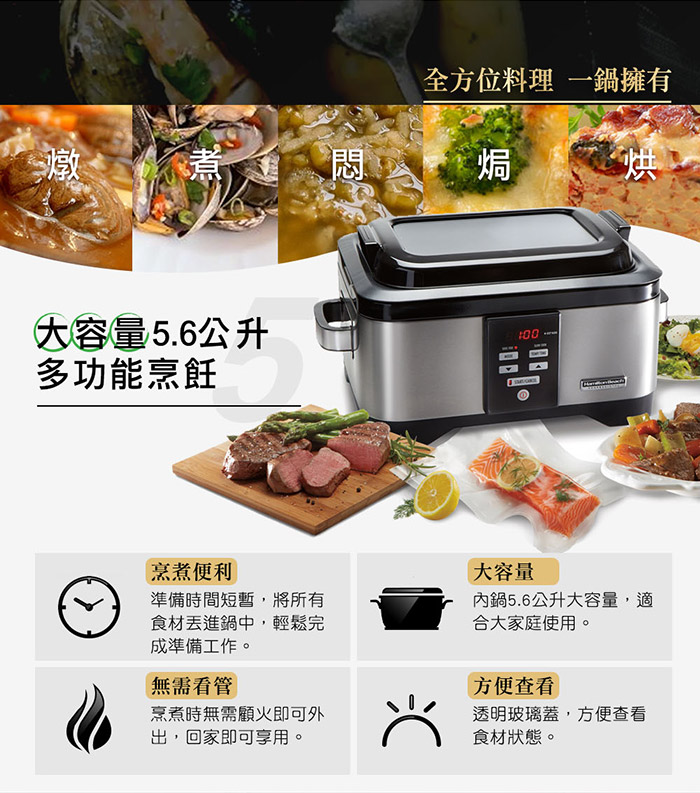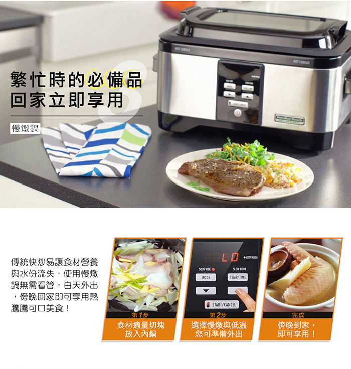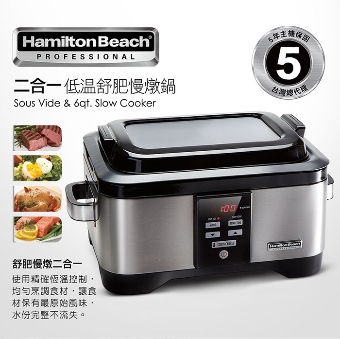 ◎ 主商品:美國漢美馳 Hamilton Beach 二合一低溫舒肥慢燉鍋