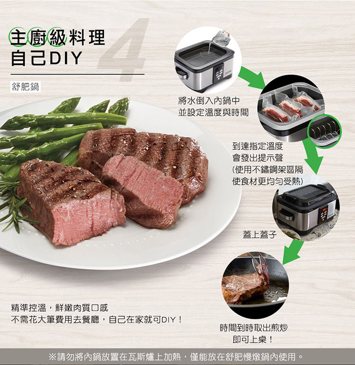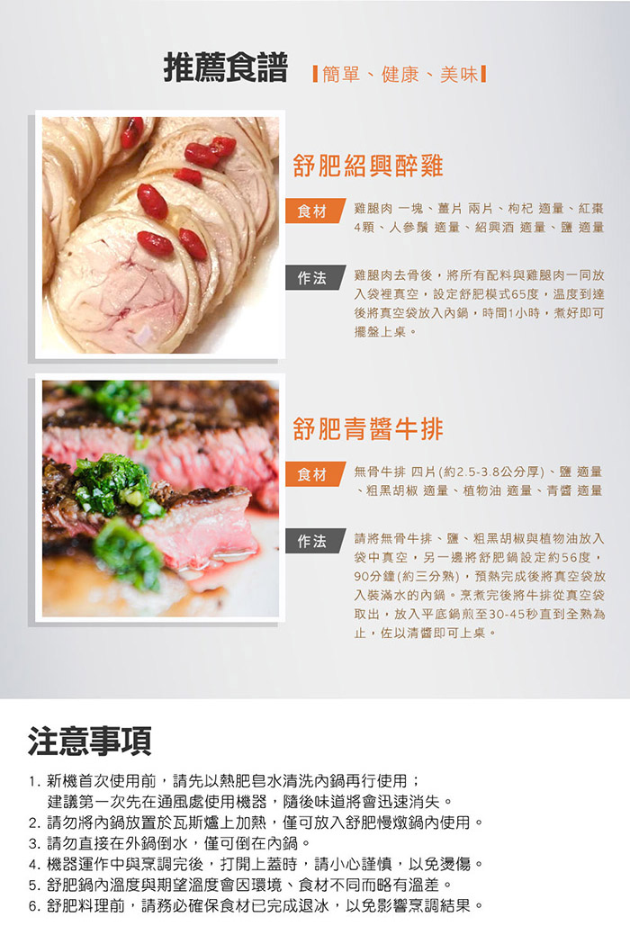 - 精準恆溫烹調,保有食材鮮嫩口感,營養100%不流失
