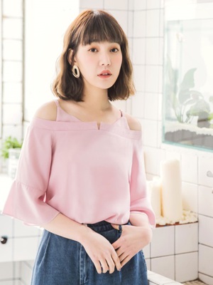 【本月刷卡優惠】細肩帶一字領喇叭袖雪紡上衣 限時活動