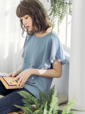 【本周限時刷卡優惠】純色燒花鏤空雪紡上衣 特惠
