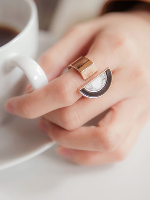 【本月限時購買優惠】黑色理石幻想半圓指環戒指 CP值爆表