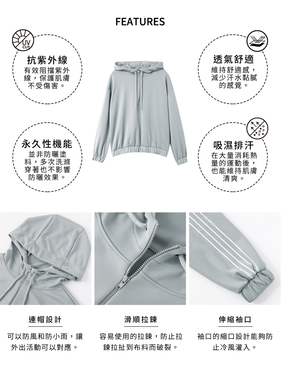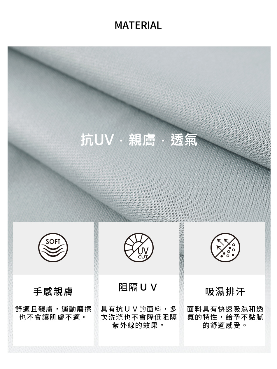 運動後穿上透氣舒適不悶熱,\\r\\n抗UV面料能有效隔離紫外線
