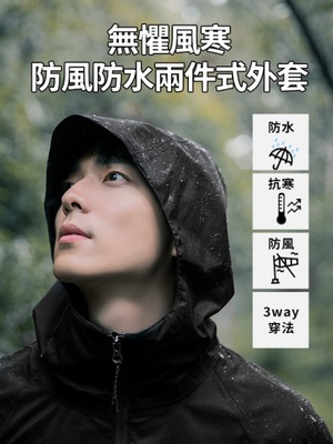 今天找到這樣商品3WAY防風防水搖粒絨雙層機能外套(可拆二件式)(男覺得還不錯
