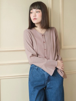 今天找到這樣商品磨毛手感美背設計V領喇叭袖襯衫/上衣覺得還不錯