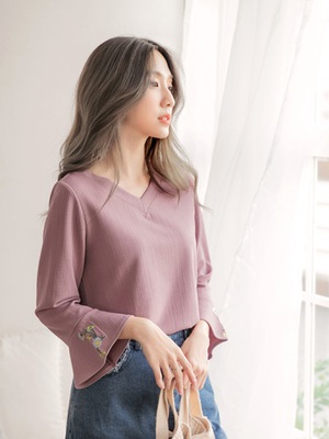 今天找到這樣商品花朵刺繡喇叭袖雪紡上衣覺得還不錯