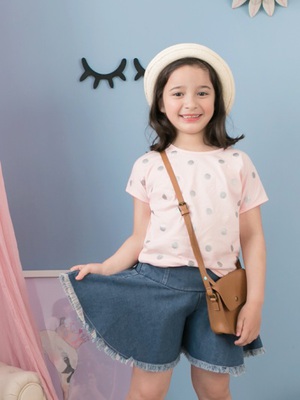 但都沒有讓我滿意的,因為看到的不是價格偏高不然就是品質不太讓我滿意,後來讓我在這裡發現了牛仔不修邊傘擺造型鬆緊寬鬆褲裙?童1色真是太開心了