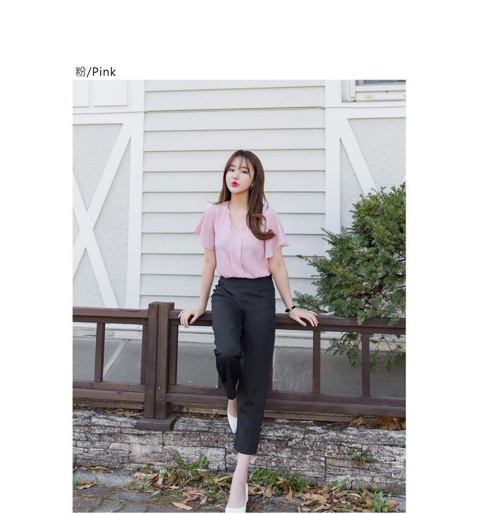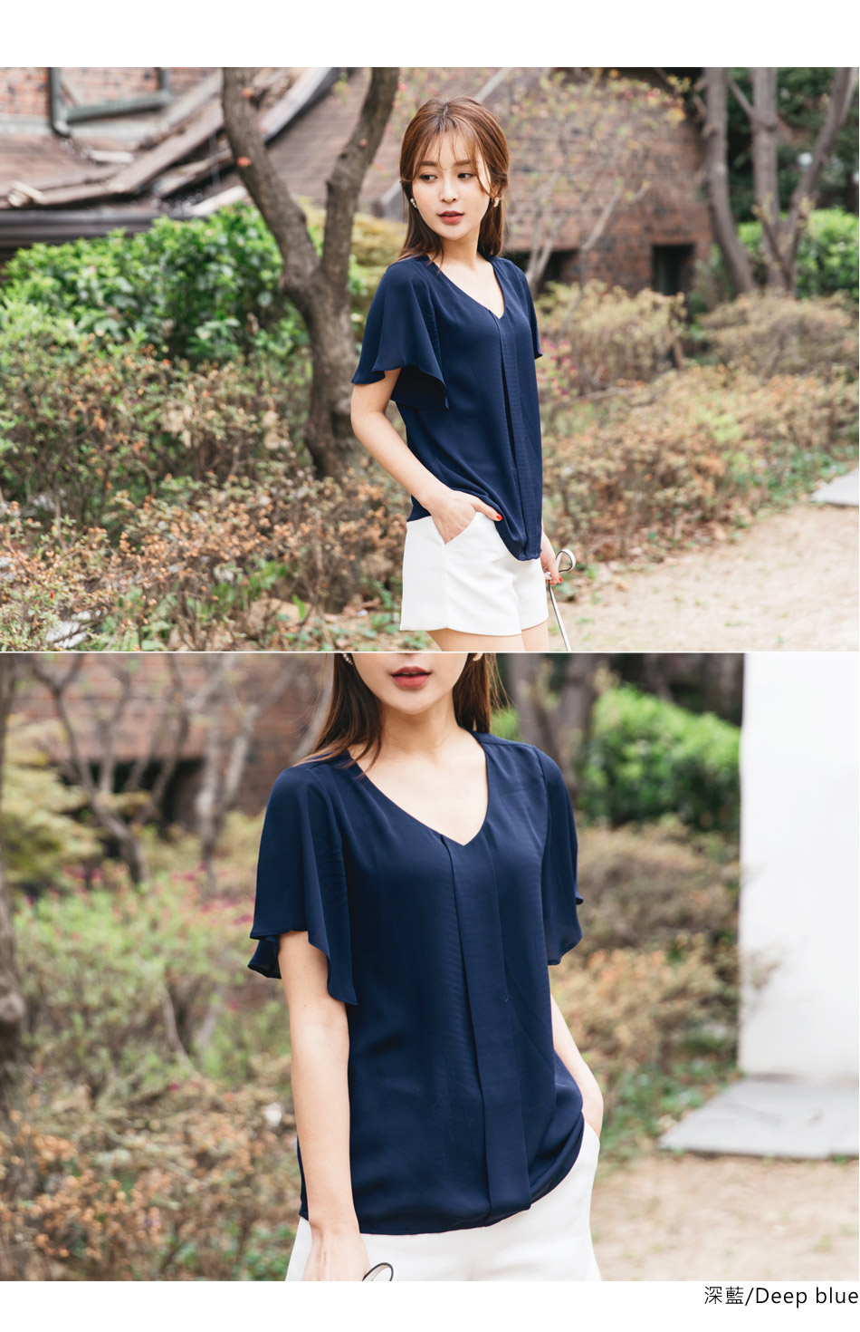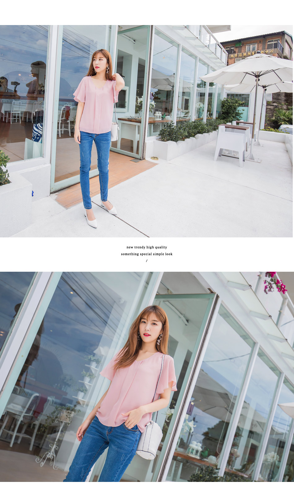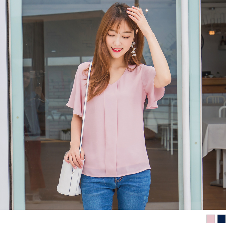 今天找到這樣商品造型打褶荷葉袖純色雪紡上衣覺得還不錯