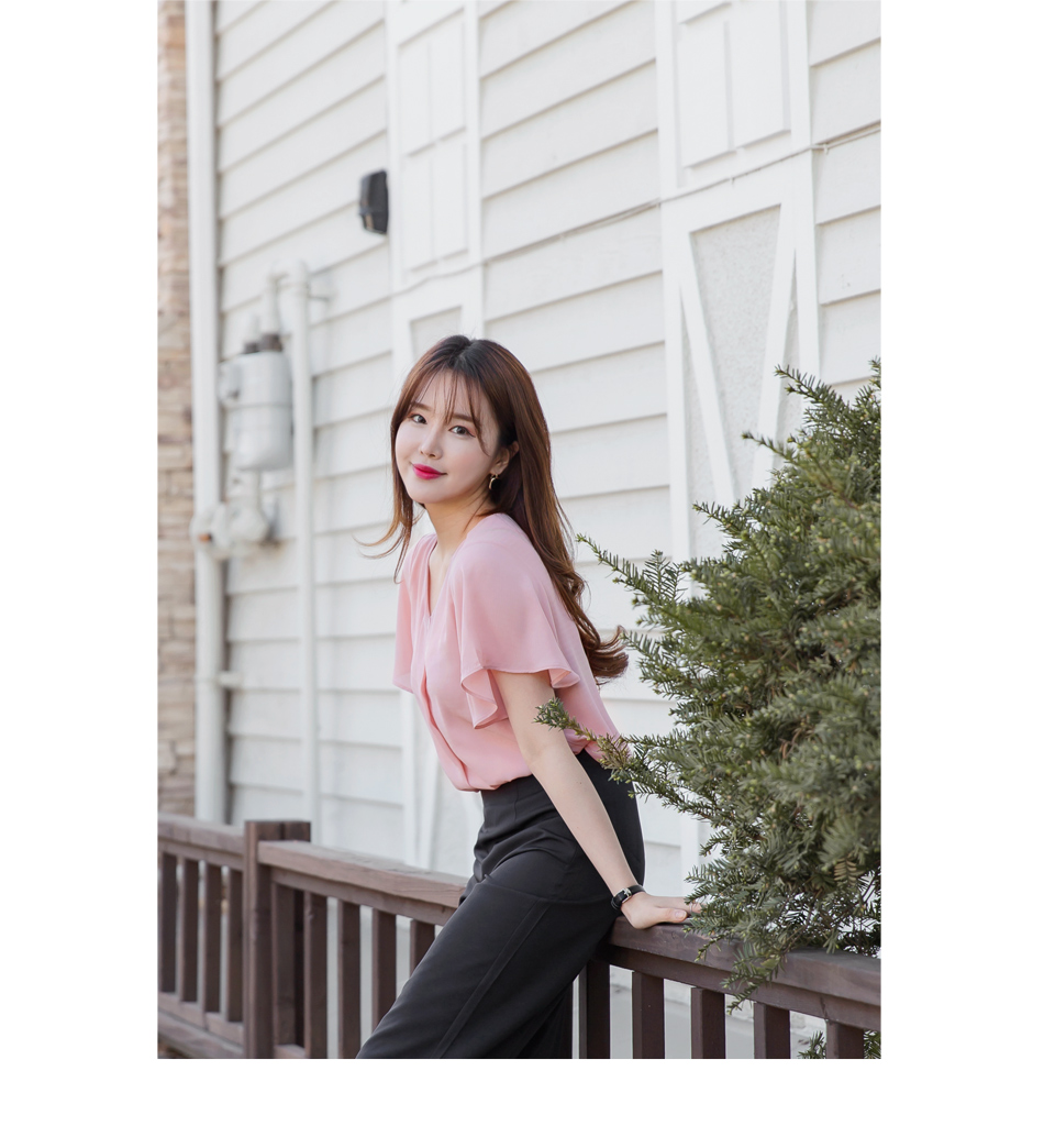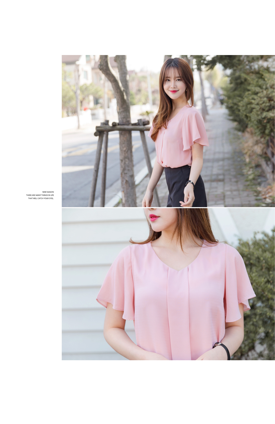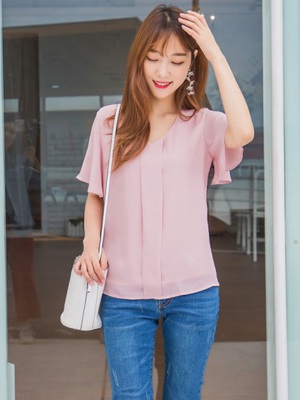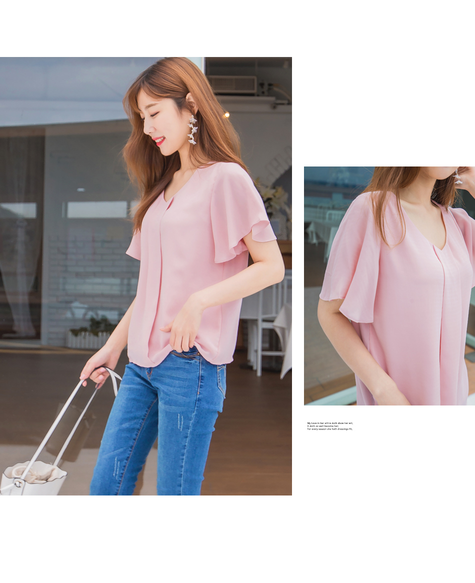 今天找到這樣商品造型打褶荷葉袖純色雪紡上衣覺得還不錯