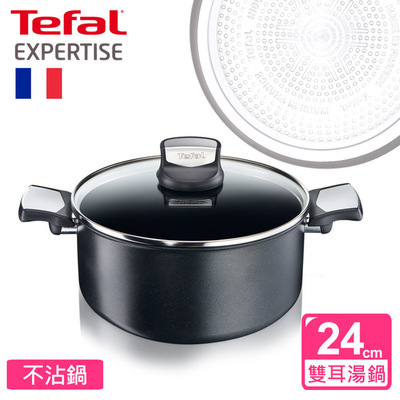 新上市! 親戚推薦的【Tefal法國特福】鈦廚悍將系列24CM不沾雙耳湯鍋加蓋(適用於電磁爐適用)這邊超省