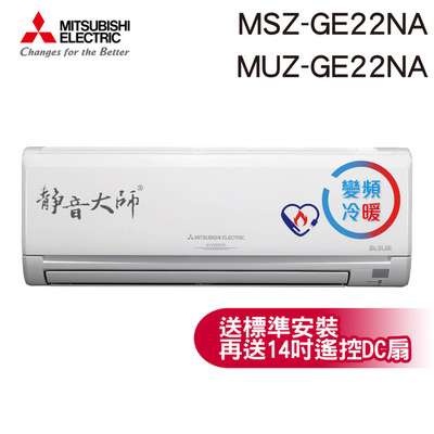 涼快 【神回饋送DC扇MITSUBISHI 三菱】靜音大師3-4坪 變頻冷暖一對一分離式冷氣(MUZ-GE22NA-MSZ-GE22NA)