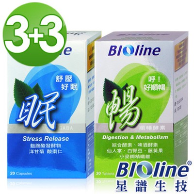 送禮推薦【BIOline星譜生技】幫助入睡排便順暢組(眠-舒壓好眠3瓶+暢-呼!好順暢3瓶)