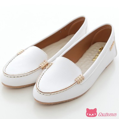 【AmiLuLu】優雅素面縫線金屬扣飾樂福休閒鞋(清新白)