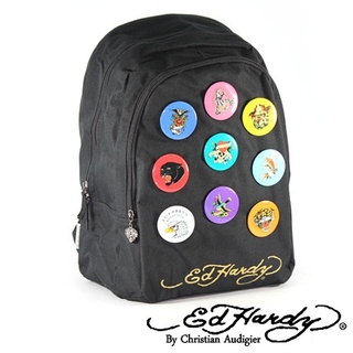 網購優惠【ED Hardy】刺繡鐵徽章雙層大背包(黑色)