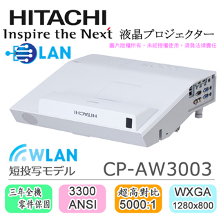 【HITACHI】CP-AW3003 WXGA高對比短焦投影機(3300流明)商品網址: http://www.momoshop.com.tw/goods/GoodsDetail.jsp?i_code=3047713&memid=6000005819&cid=apuad&oid=1&osm=league商品訊息功能: