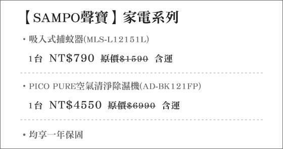 宅配鞏固居家生活品質,就要選聲寶。PICOPURE清淨除濕機、吸入式捕蚊器,讓家裡空氣更清淨、減滅蚊蟲 團購熱賣推薦