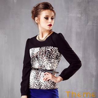 好美@【Theme】豹紋圓領針織長袖上衣(深咖)