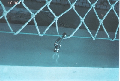 一般來說安全網的固定方式,不外乎幾種:如果是水泥RC牆面,則大部分使用膨脹螺絲及吊帽的組合呈現如果是木板裝潢,則免不了使用木工螺釘及掛勾組合呈現如果是石膏板,沒別的!拆板.....或是安卡呈現如果是鋼...