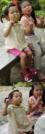 右圖:識如姐姐簡直是嘟的偶像, 怎麼有辦法弄出個那麼大的Bubble, 瞧嘟發出讚嘆的眼神! 左圖:嘟忍不住要去偷摸一下!