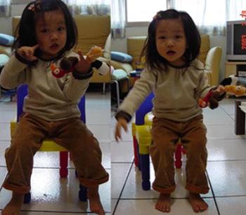 瞧嘟啦! 只自顧自地擺Pose, 一點都沒有要逗表弟的意思, 唉! 原來這麼小的小孩就已經有喜好了, 分辨的出喜歡或不喜歡朋友。