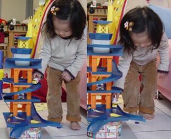 滑梯時還是小有糾紛, 因嘟還是小有戒心, 不太和小朋友一起玩遊戲。 總覺得別人搶她的滑梯玩。