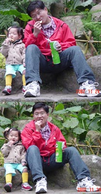 走了那麼長的步道,加上天又冷,的確是又累又餓, 最享受的莫過於來上一碗熱騰騰的泡麵。 本想買些熱食給嘟暖暖身子, 無奈僅有嘟不能吃的泡麵, 還是拿出了自家的Pringles。 瞧這爺女兩人,...