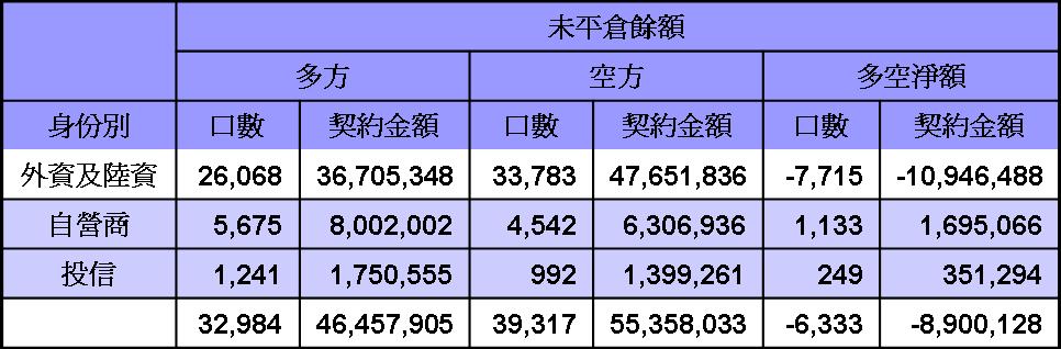 台股期貨未平倉空單部位及台指選擇權未平倉多單部位