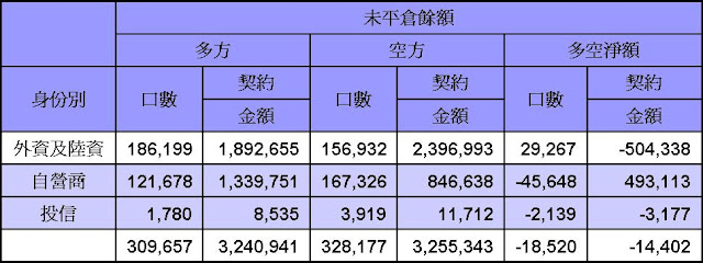 台股期貨未平倉空單部位及台指選擇權未平倉多單部位