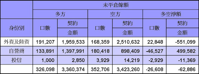 台股期貨未平倉空單部位及台指選擇權未平倉多單部位