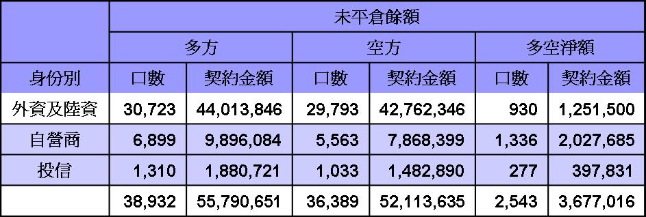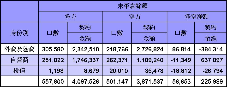 外資台股期貨未平倉今日平倉放掉不少多單部位