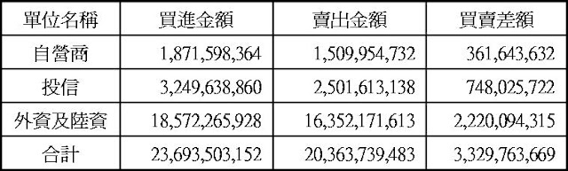 現貨部份三大法人合計買超33.30億