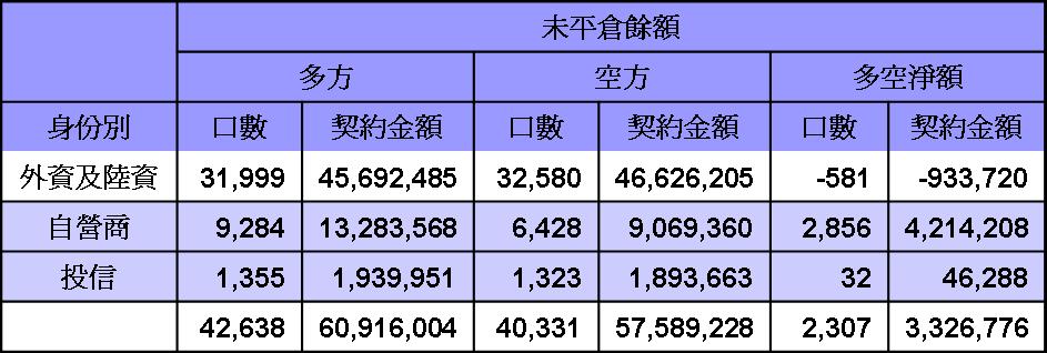 台股期貨未平倉20120113
