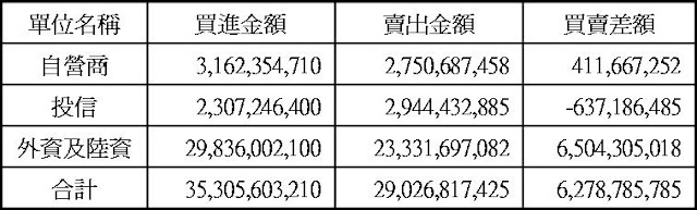 現貨部份三大法人合計買超62.79億