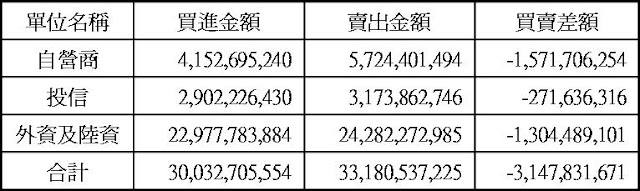 現貨部份三大法人合計賣超31.48億
