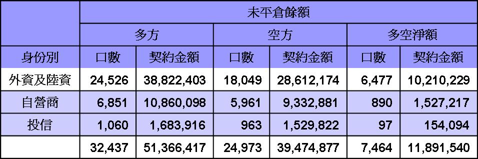 台股期貨未平倉20120224