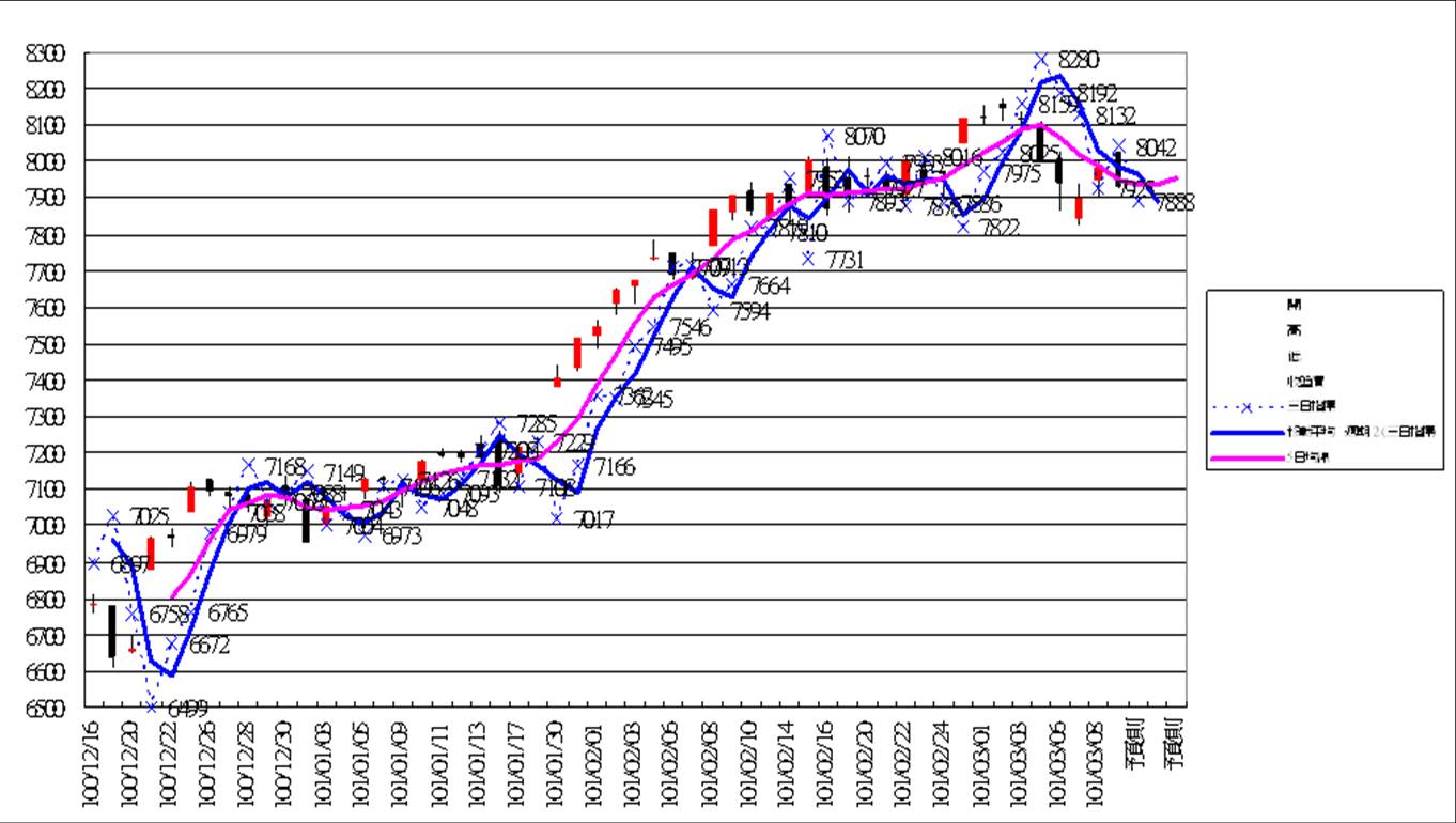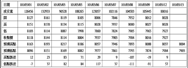 高低點震盪預測+/-誤差大於75點或與前日變化大表示進入盤整或新趨勢