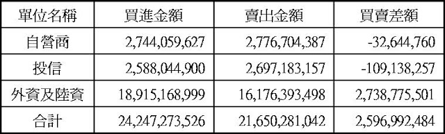 現貨部份三大法人合計買超25.97億