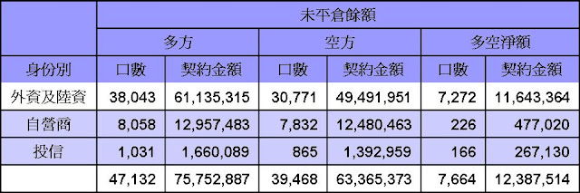 台股期貨未平倉20120319