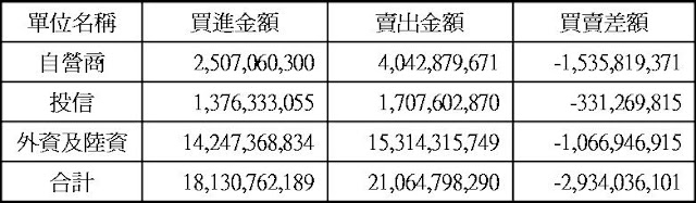 現貨部份三大法人合計賣超29.34億