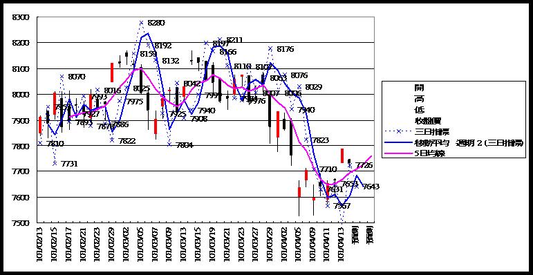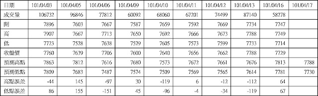 高低點震盪預測+/-誤差大於75點或與前日變化大表示進入盤整或新趨勢