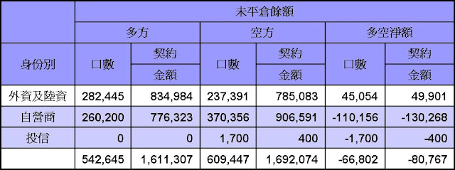 值得注意的是自營商的選擇權空單來到離譜的11萬口