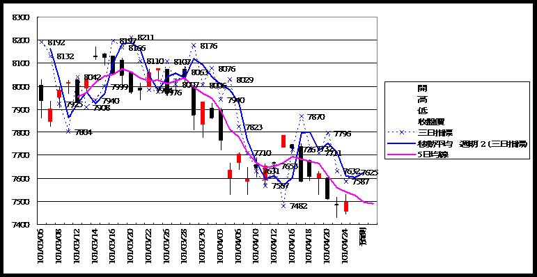 高低點震盪預測+/-誤差大於75點或與前日變化大表示進入盤整或新趨勢