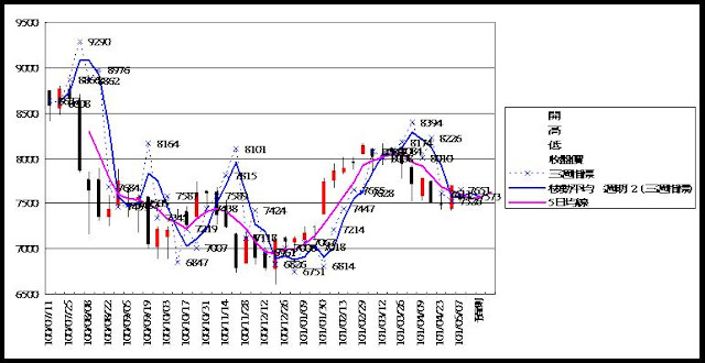 高低點震盪預測+/-誤差大於75點或與前日變化大表示進入盤整或新趨勢