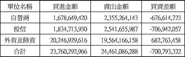 現貨部份三大法人合計賣超7.01億