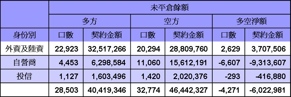 台股期貨未平倉20120528